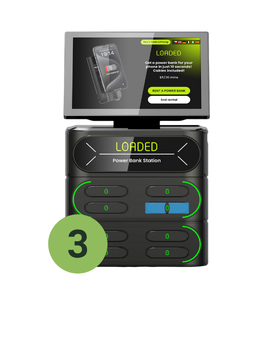 Als partner betaal je niets voor de plaatsing van onze powerbankstations. Loaded verzorgt de powerbank verhuur volledig kosteloos.